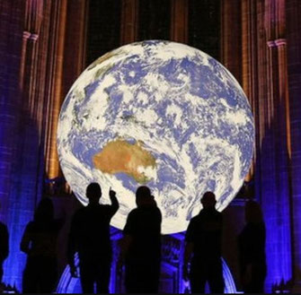 Gaia ist ein tourendes Kunstwerk des britischen Künstlers Luke Jerram und ist aktuell in Osnabrück zu sehen. Vom 16. August bis zum 15. September schwebt eine sechs Meter große Nachbildung der Erde in der Bergkirche und ist von 13 bis 22 Uhr für die Öffentlichkeit zugänglich.